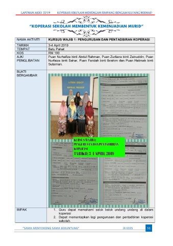 NAMA AKTIVITI KURSUS WAJIB 1: PENGURUSAN DAN PENTADBIRAN KOPERASI