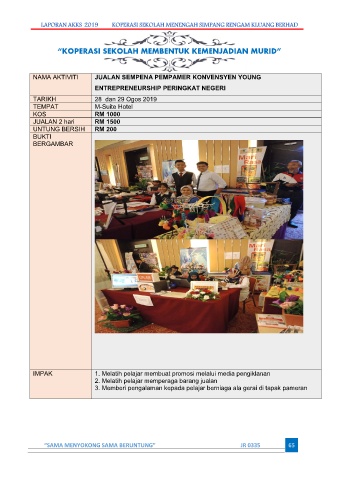 NAMA AKTIVITI JUALAN SEMPENA PEMPAMER KONVENSYEN YOUNG