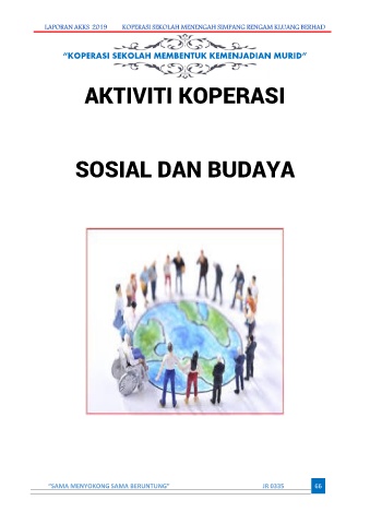 LAPORAN AKKS 2019 KOPERASI SEKOLAH MENENGAH SIMPANG RENGAM KLUANG BERHAD “KOPERASI SEKOLAH MEMBENTUK KEMENJADIAN MURID” AKTIVITI KOPERASI SOSIAL DAN BUDAYA “SAMA MENYOKONG SAMA BERUNTUNG” JR 0335 66