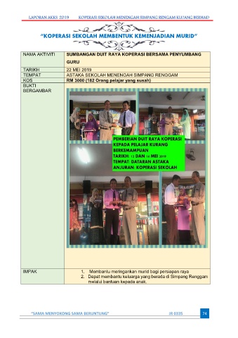 NAMA AKTIVITI SUMBANGAN DUIT RAYA KOPERASI BERSAMA PENYUMBANG
