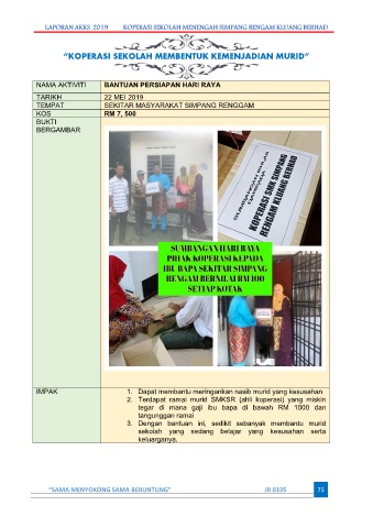 NAMA AKTIVITI BANTUAN PERSIAPAN HARI RAYA