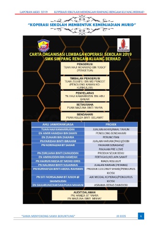 LAPORAN AKKS 2019 KOPERASI SEKOLAH MENENGAH SIMPANG RENGAM KLUANG BERHAD “KOPERASI SEKOLAH MEMBENTUK KEMENJADIAN MURID” “SAMA MENYOKONG SAMA BERUNTUNG” JR 0335 6