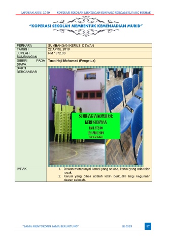 IMPAK 1. Dewan mempunyai kerusi yang selesa, kerusi yang ada telah