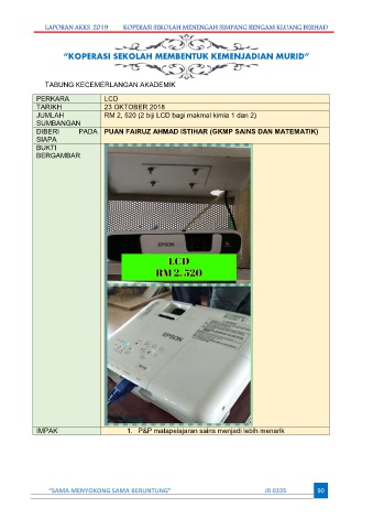 JUMLAH RM 2, 520 (2 biji LCD bagi makmal kimia 1 dan 2)