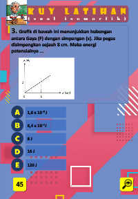 k u y l a t i h a n 3. Grafik di bawah ini menunjukkan hubungan antara Gaya (F) dengan simpangan (x). Jika pegas disimpangkan sejauh 8 cm. Maka energi potensialnya ... 1,6 x 10 J -5 6,4 x 10 J -1 8 J 16 J 126 J 45