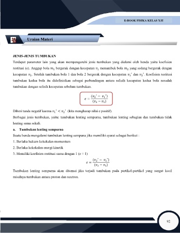 Berbagai jenis tumbukan, yaitu: tumbukan lenting sempurna, tumbukan lenting sebagian dan tumbukan tidak