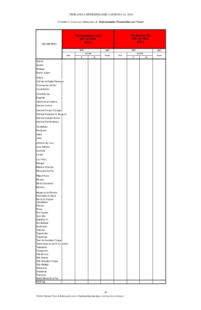 CUADRO 5. Casos por Municipio de Enfermedades Trasmisibles por Vector