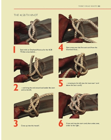 1 start with an overhand Knot as for the 4l3B 4 now cross over the first exit cord from the