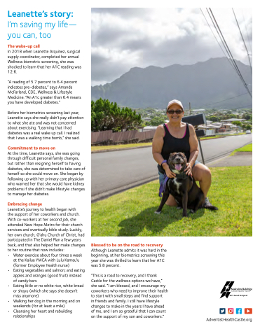 In 2018 when Leanette Arquinez, surgical supply coordinator, completed her annual Wellness biometric screening, she was shocked to learn that her A1C reading was 12.6.