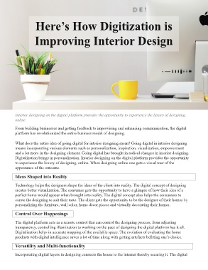 Digitalization brings in personalization. Interior designing on the digital platform provides the opportunity