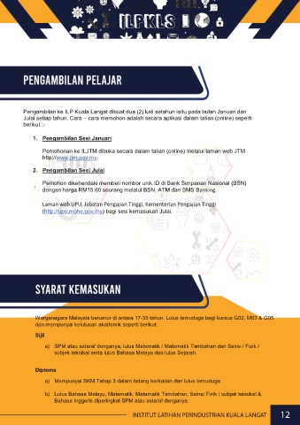 Pengambilan ke ILP Kuala Langat dibuat dua (2) kali setahun iaitu pada bulan Januari dan