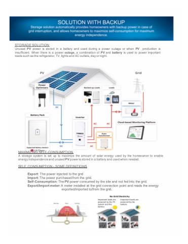Self-Consumption: The PV power consumed by the site and not fed into the grid. Export/Import meter: A meter installed at the grid connection point and reads the energy