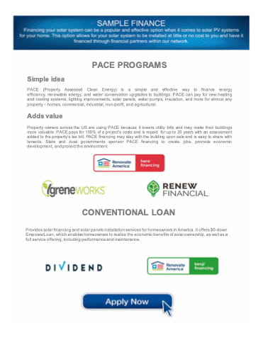 Provides solar financing and solar panels installation services for homeowners in America. It offers $0-down EmpowerLoan, which enables homeowners to realize the economic benefits of solar ownership, as well as a full service offering, including performance and maintenance.