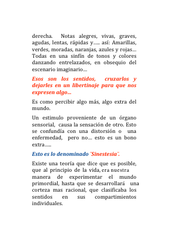 Un estimulo proveniente de un órgano sensorial, causa la sensación de otro. Esto se confundía con una distorsión o una enfermedad, pero no... esto es un bono extra.....