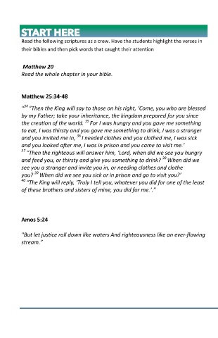 Read the following scriptures as a crew. Have the students highlight the verses in