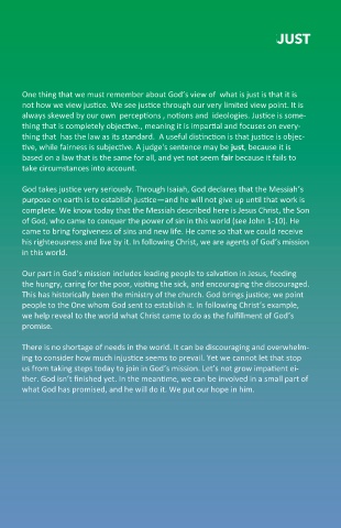 the name of the Lord’!” God takes justice very seriously. Through Isaiah, God declares that the Messiah’s