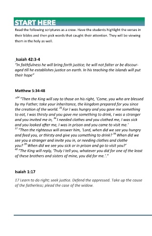 Read the following scriptures as a crew. Have the students highlight the verses in