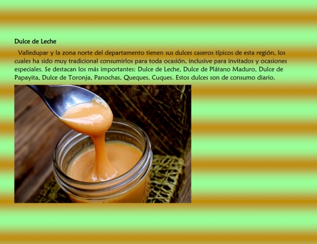 especiales. Se destacan los más importantes: Dulce de Leche, Dulce de Plátano Maduro, Dulce de