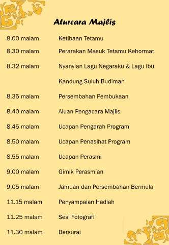 8.30 malam Perarakan Masuk Tetamu Kehormat