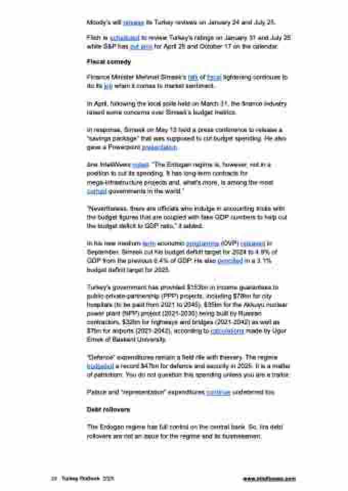 Moody’s will release its Turkey reviews on January 24 and July 25. Fitch is scheduled to review Turkey’s ratings on January 31 and July 25