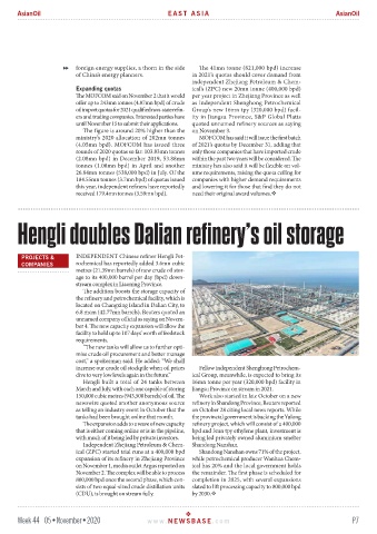 oil import quotas for 2021 qualified non-state refin- Group’s new 16mn tpy (320,000 bpd) facil-