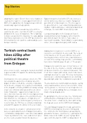 Shortly before the rates announcement, the TRY lost around 3% against the US dollar when Er- dogan, in what seemed like carefully scripted po- litical theatre, sharply criticised the Central Bank of the Republic of Turkey (CBRT) for taking “wrong steps” over inflation and repeated his unconven- tional “Erdonomic” opposition to high interest rates. Investors have become increasingly worried that Erdogan, who espouses the unorthox theory that inflation is a consequence of high interest rates, has taken over monetary policy. Partly as a result of that, the TRY has recently been down by around 40% against the dollar in the year to date.