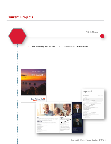 Current Projects • FedEx delivery was refused on 9.12.19 from Josh. Please advise. Pitch Deck Prepared by Myriad Advisor Solutions 9/17/2019