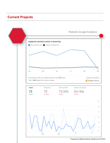 Current Projects Website Google Analytics Prepared by Myriad Advisor Solutions 9/17/2019