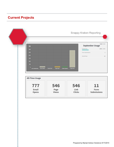 Current Projects Snappy Kraken Reporting Prepared by Myriad Advisor Solutions 9/17/2019