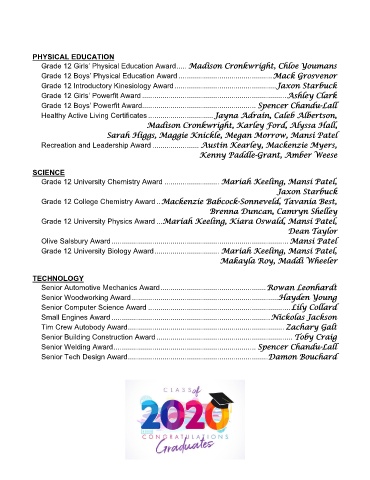 Grade 12 Girls’ Physical Education Award ..... Madison Cronkwright, Chloe Youmans