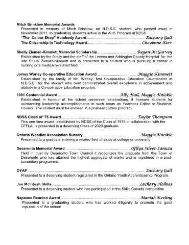 Napanee Reunion Award ............................................................................ Mariah Keeling