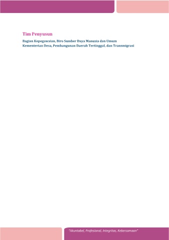 Penyusun Tim Penyusun Bagian Kepegawaian, Biro Sumber Daya Manusia dan Umum Kementerian Desa, Pembangunan Daerah Tertinggal, dan Transmigrasi “Akuntabel, Profesional, Integritas, Kebersamaan”