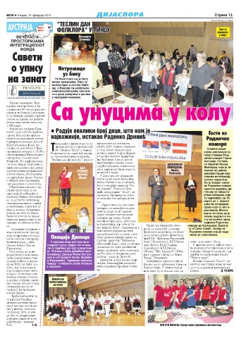 VESTI x Utorak, 12. februar 2019. DIJASPORA Strana 13.