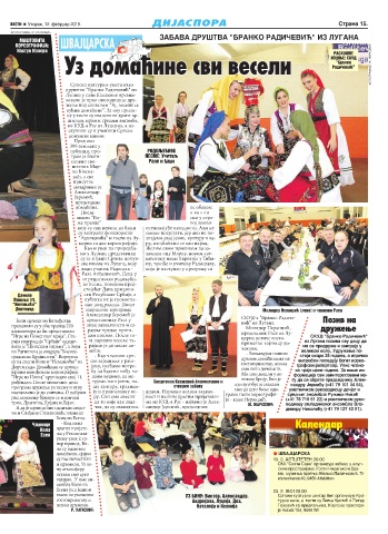 VESTI x Utorak, 12. februar 2019. DIJASPORA Strana 15.