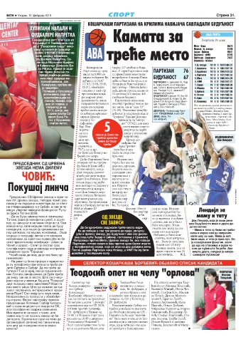 VESTI x Utorak, 12. februar 2019. SPORT Strana 31.