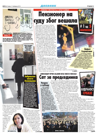 VESTI x Utorak, 12. februar 2019. DNEVNIK Strana 5.