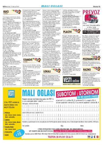 VESTI x Utorak, 12.februar 2019. Strana 19.
