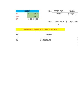 PE= COSTOS FIJOS $ 50,000.00 20 50%