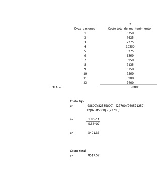 Ovcerbaciones Costo total del mantenimiento Horas de reparacion