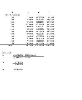 Ovcerbaciones Costo total del mantenimiento Horas de reparacion