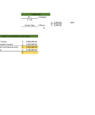 PE = $ 4,000,000.00 = Margen de Contribucion total $ 2,400,000.00