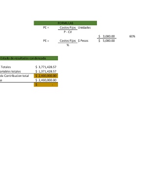PE = $ 4,000,000.00 = Margen de Contribucion total $ 2,400,000.00