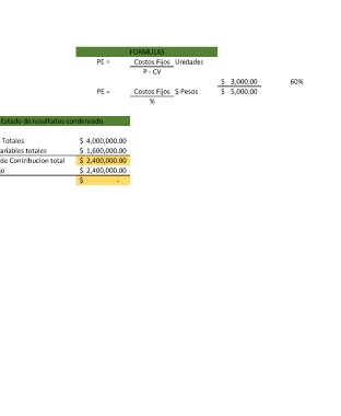PE = $ 4,000,000.00 = Margen de Contribucion total $ 2,400,000.00