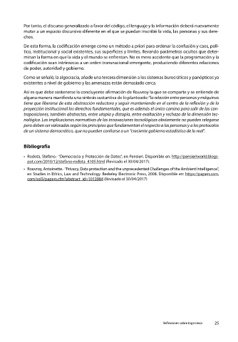 • Rodotá, Stefano.- “Democracia y Protección de Datos”, en Pensieri. Disponible en: http://pensieriworld.blogs-