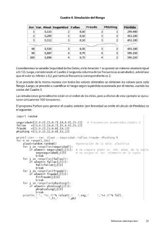 El programa Python para generar el cuadro anterior (por brevedad se omite el cálculo de Pérdidas) es