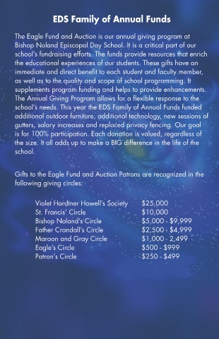 Gifts to the Eagle Fund and Auction Patrons are recognized in the