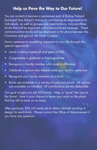 Our goal tonight is to sell 300 bricks. Help us “pave” the way to