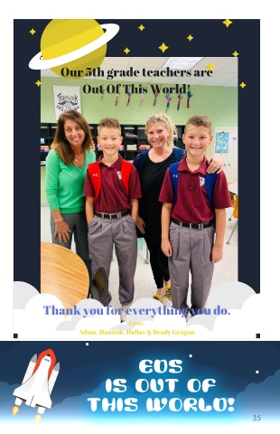 Our 5th grade teachers are Out Of This World! Thank you for everything you do. Love, Adam, Hannah, Dallas & Brady Grogan EDS is Out Of This World! 35