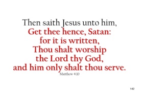 Then saith Jesus unto him, Get thee hence, Satan: for it is written, Thou shalt worship the Lord thy God, and him only shalt thou serve. Matthew 4:10 142