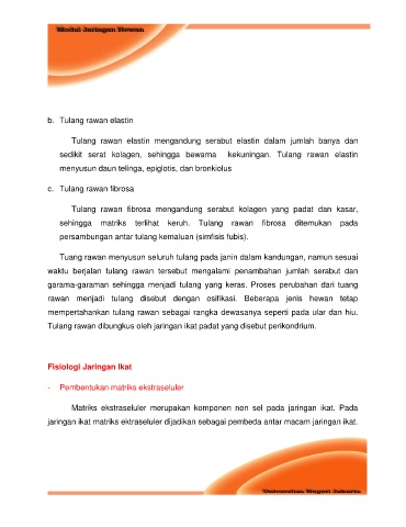 sedikit serat kolagen, sehingga bewarna kekuningan. Tulang rawan elastin